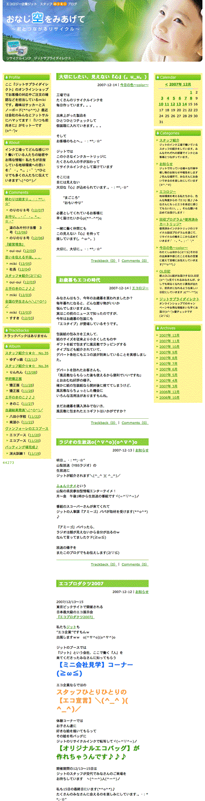 【リサイクルインク製造販売のジット株式会社様のスタッフブログを、既存ブログサービスをアレンジして制作】